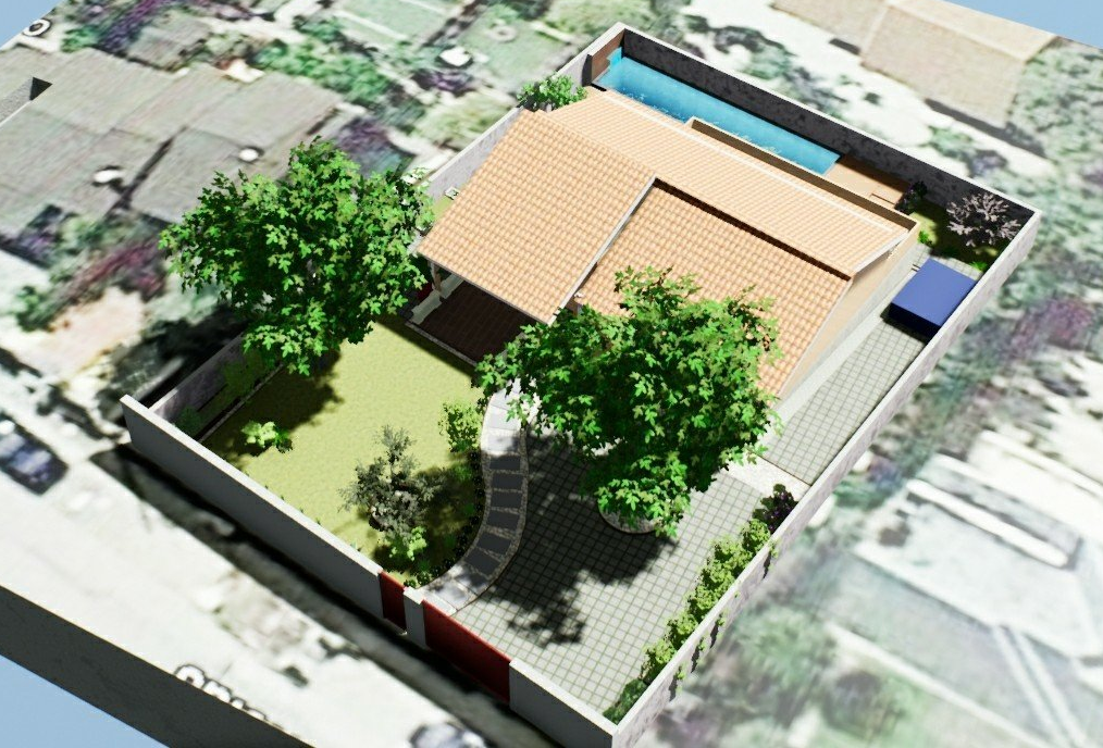 Se plantea una solución respetuosa con los niveles de parcela existentes pero, que a su vez, permita su uso y disfrute, estableciendo conexiones entre la vivienda y las distintas zonas a través de movimientos de tierra que permitan un recorrido a nivel entre ellas.