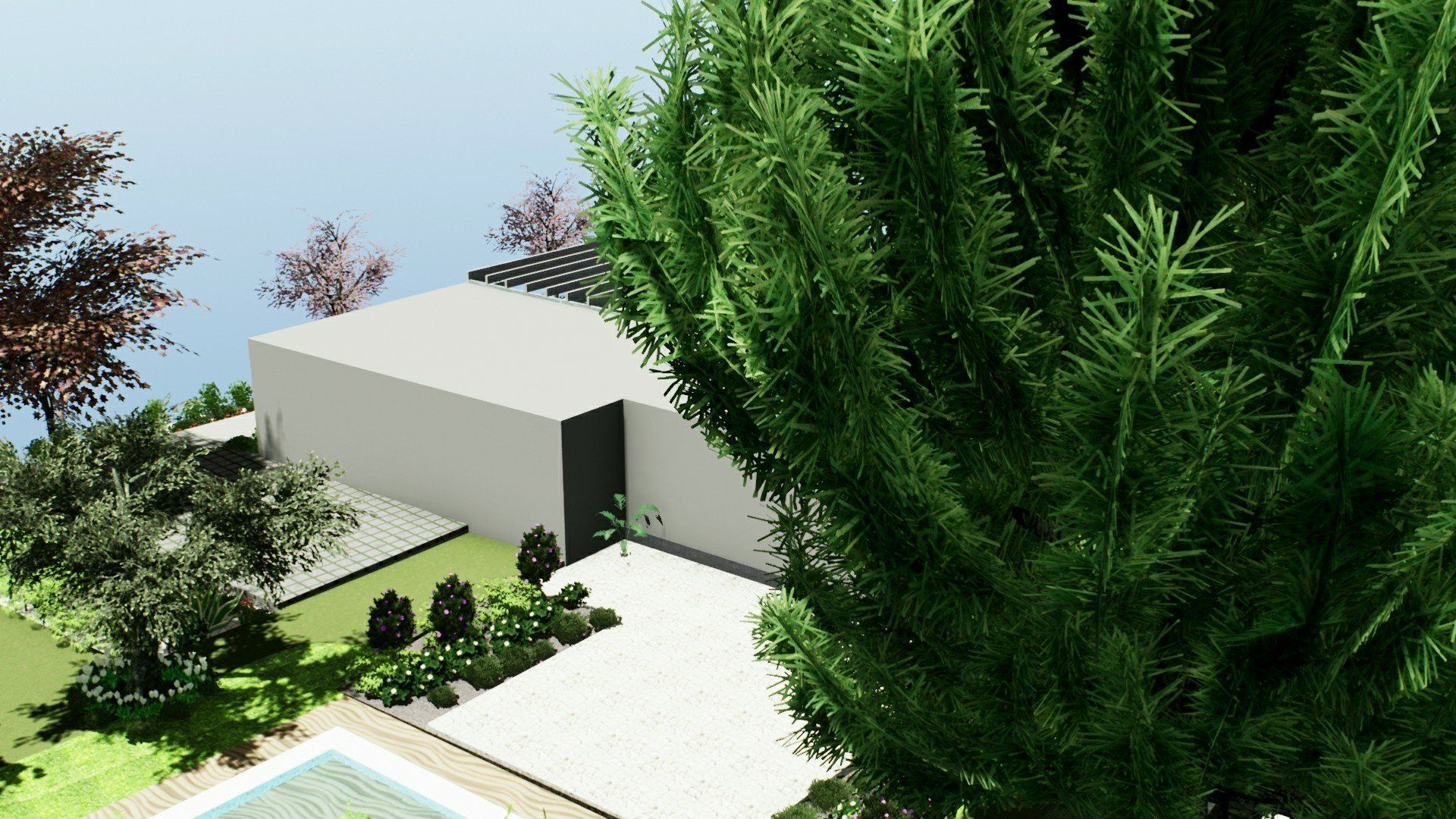 Se plantea una solución respetuosa con los niveles de parcela existentes pero, que a su vez, permita su uso y disfrute, estableciendo conexiones entre la vivienda y las distintas zonas a través de movimientos de tierra que permitan un recorrido a nivel entre ellas.